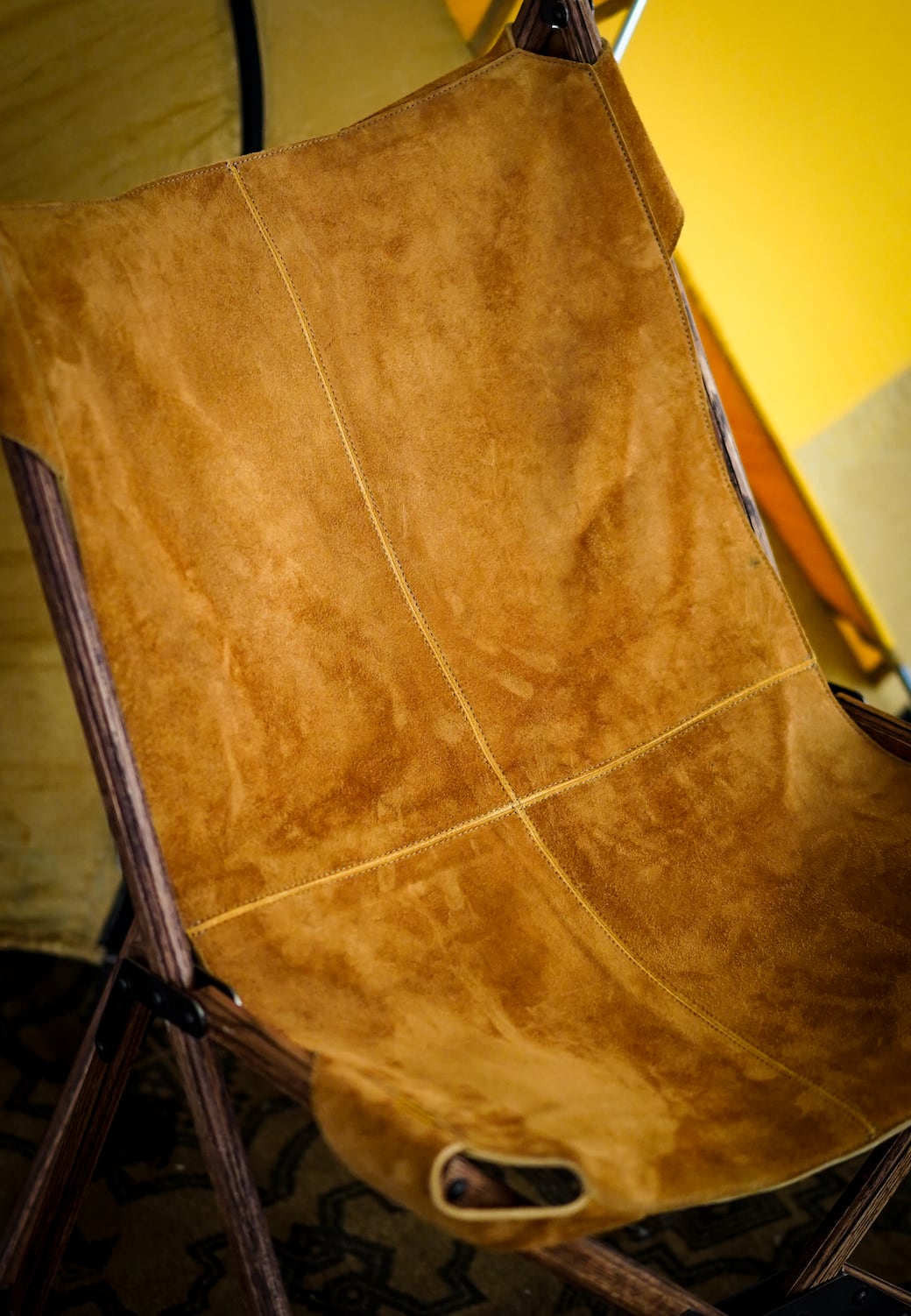 キャメルレザーを贅沢に使用したフォールディングチェア